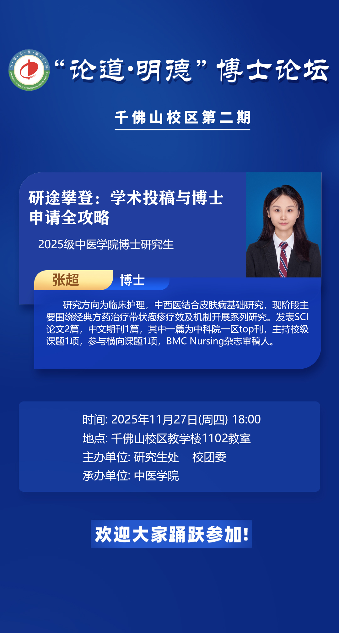 18:00千佛山校区教学楼1102“论道·明德”博士论坛(2)
