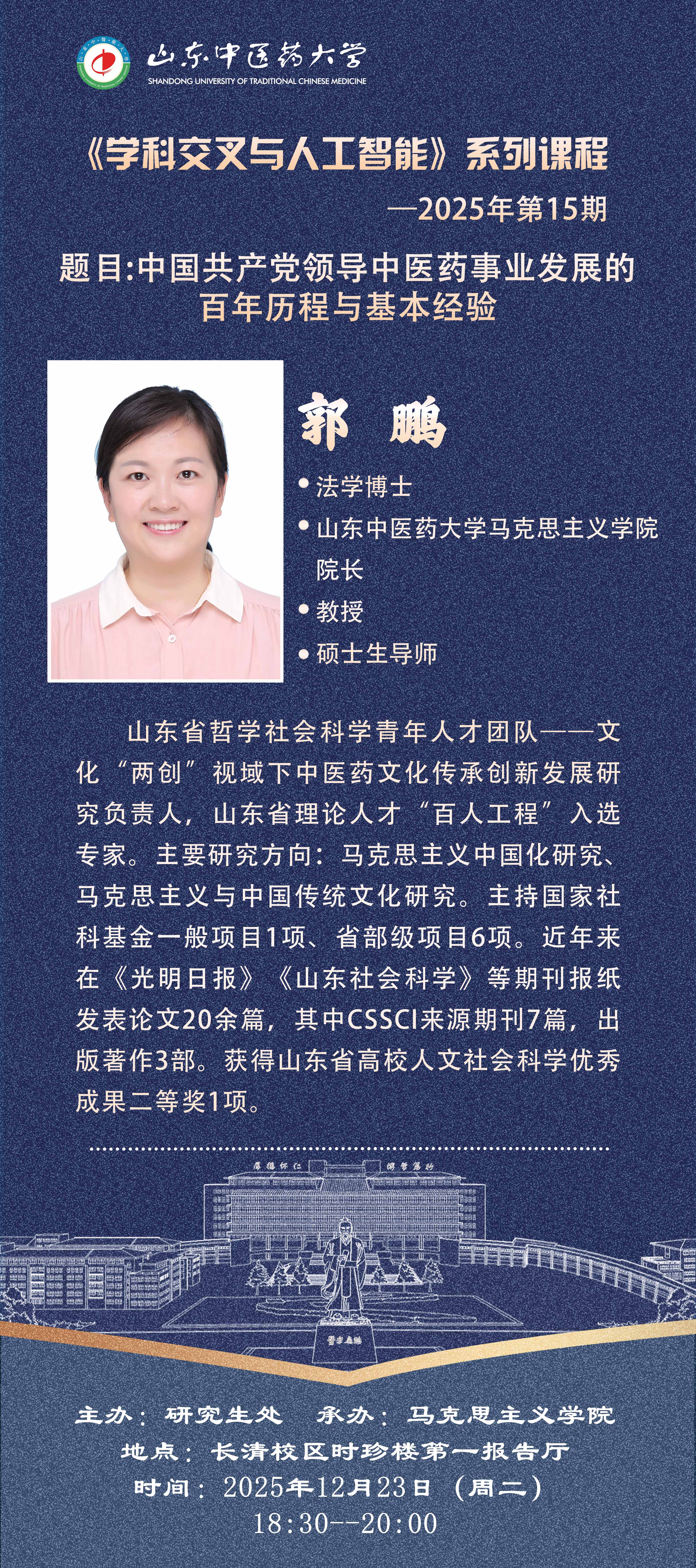 主讲人:郭鹏 题目:《中国共产党领导中医药事业发展的百年历程与基本经验》